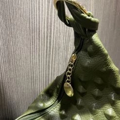Malini Anna Olive Pyramid Raised Stud Boho Bucket Shape Leather Bag