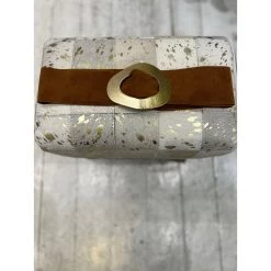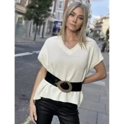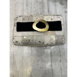 Malini Bella Black Metallic Leather Gold Tone Buckle Belt