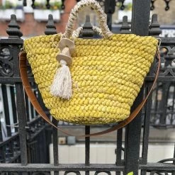Malini Bella Yellow Hand Made Straw Basket Bag