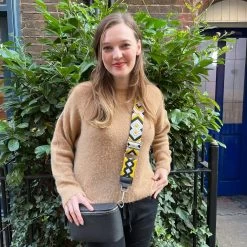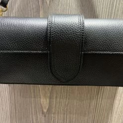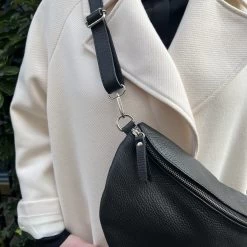 Malini Kayla Black Soft Leather Wide Woven Strap Cross Body Bag