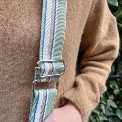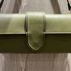 Malini Kayla Green Soft Leather Wide Woven Strap Cross Body Bag