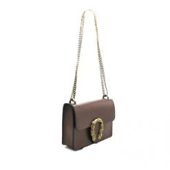 Malini Lillian Brown Leather Horseshoe Buckle Bag