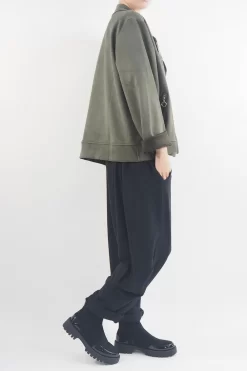 Made In Italy Sander Moleskin Touch Stretch Zippy Cape Olive //