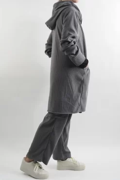 Made In Italy Jumbo Softie Stretch Cord Long Zip Jacket Storm