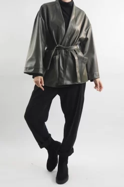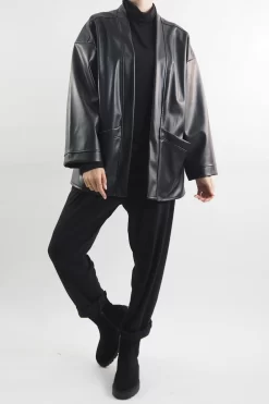 Made In Italy Moxie Belted Kimono Jacket Black