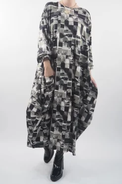 Made In Italy Oversized Tech Soft Cocoon Dress Cubist Mono