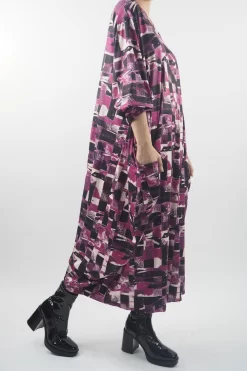 Made In Italy Oversized Tech Soft Cocoon Dress Cubist Magenta **
