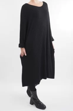 Made In Italy Ribbed Soft Knit Trapeze Dress Black