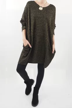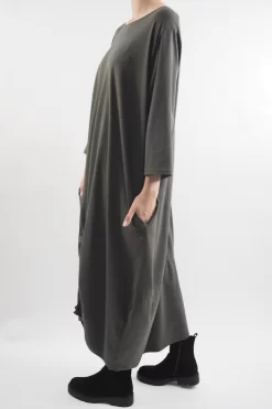 Made In Italy Sander Panel Long Sleeve Cocoon Dress Khaki