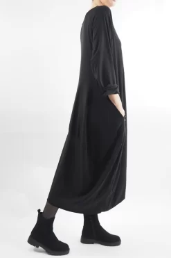 Made In Italy Sander Panel Long Sleeve Cocoon Dress Black