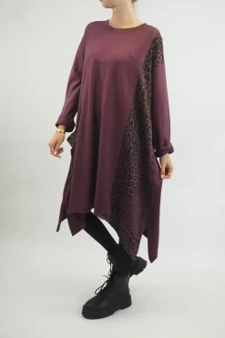 Made In Italy Tokyo Leopard Panel Dress Aubergine