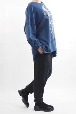 Made In Italy Queeni Star Skull Cut Out Top Airforce Blue