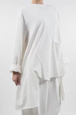 Made In Italy Lagenlook High Low Pocket Sweatshirt Ecru