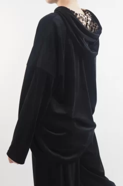 Made In Italy Leopard Love Stretch Velour Hoodie Black /