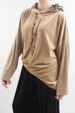 Made In Italy Leopard Love Stretch Velour Hoodie Camel