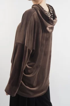 Made In Italy Leopard Love Stretch Velour Hoodie Chocolate