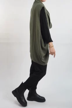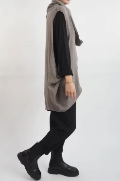 Made In Italy Obi Crepe Cotton Cross Cowl Tank Mushroom