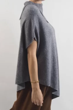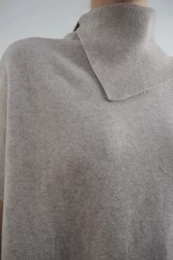 Made In Italy Conrad Oversized Fray Cowl Knit Top Stone