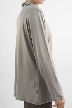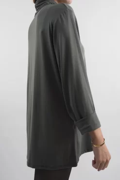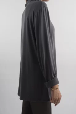 Made In Italy Fine Jersey Polo Neck Top Graphite