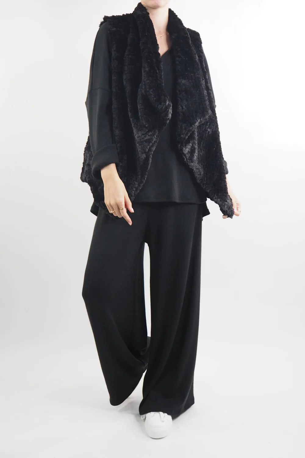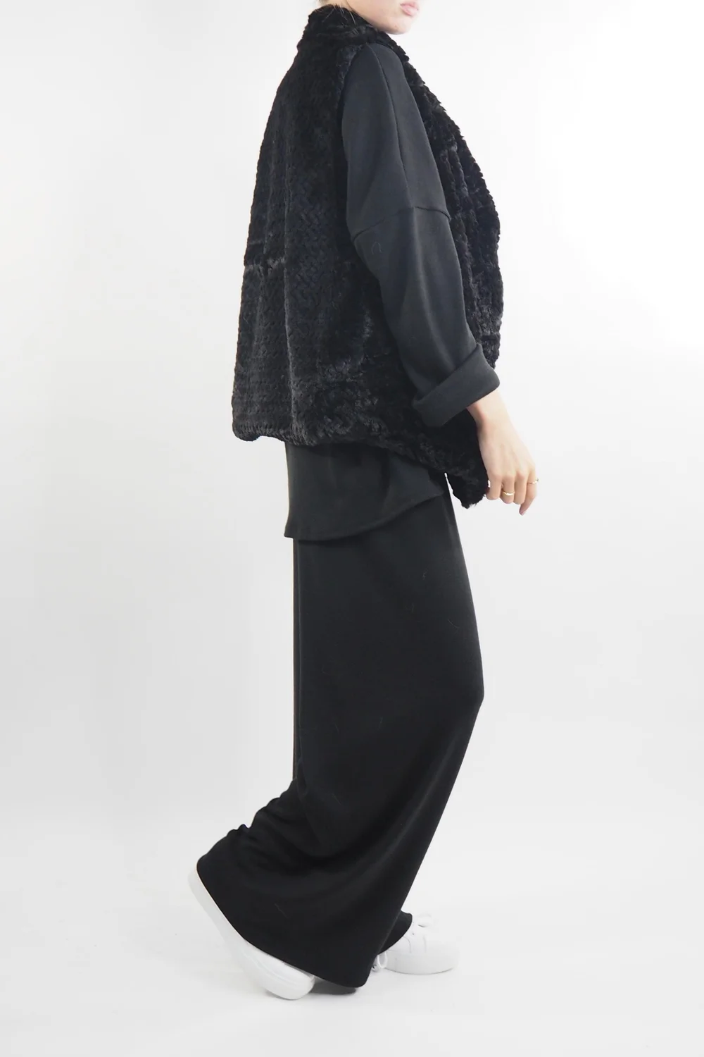 The Laundry B Chalet Gilet in Black: This plush masterpiece effortlessly combines warmth and style, making it the perfect companion for autumn-winter layering or a chic statement piece for the ski season. It’s the perfect, top layer piece. Style with our Relaxed Chalet Set for the perfect look, this piece complements any outfit, whether you’re strolling through the city streets or hitting the slopes. It’s time to elevate your winter wardrobe.