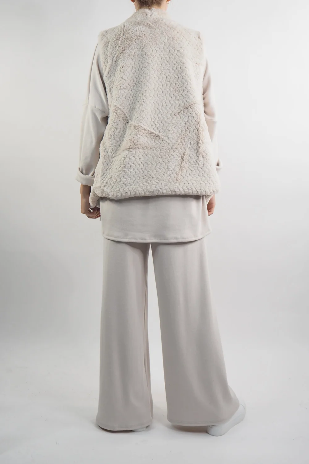 The Laundry B Chalet Gilet in Stone, beige cream tone: This plush masterpiece effortlessly combines warmth and style, making it the perfect companion for autumn-winter layering or a chic statement piece for the ski season. It’s the perfect, top layer piece. Style with our Relaxed Chalet Set for the perfect look, this piece complements any outfit, whether you’re strolling through the city streets or hitting the slopes. It’s time to elevate your winter wardrobe.