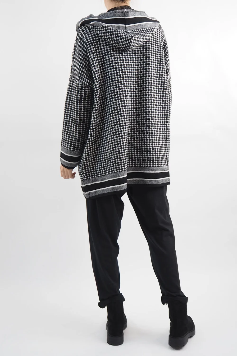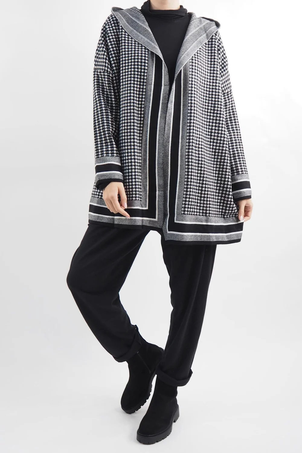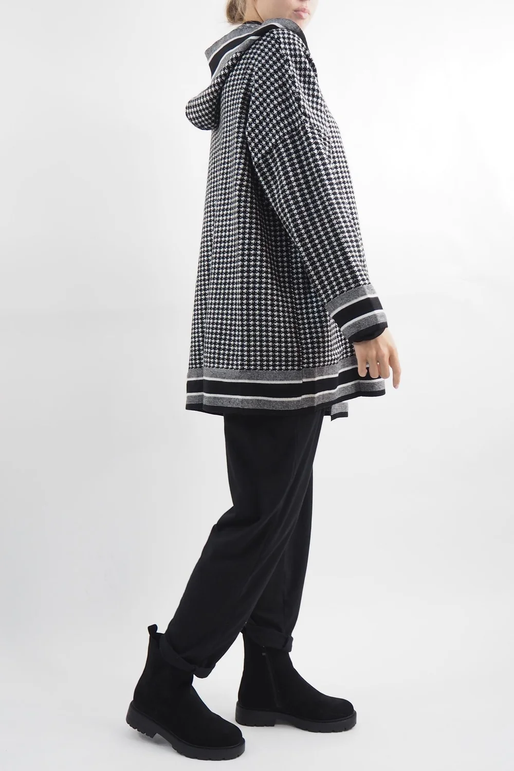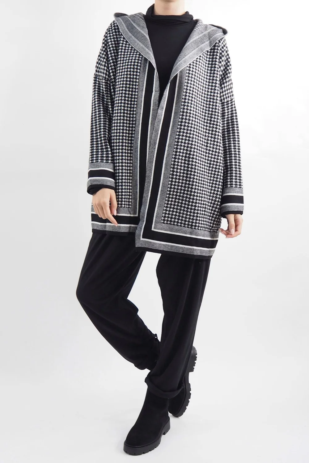 Embrace the crisp allure of autumn with our Laundry B Dogtooth Hooded Knit Blazer, a testament to sophistication and warmth. This blazer with a classic dogtooth pattern, effortlessly captures the essence of fall fashion. The fine knit ensures a cosy embrace, making it the ideal companion for brisk autumn evenings. Pair this statement piece with our Laundry B Moxie Wide Leg Trousers, an embodiment of edgy elegance. The sleek leather finish of the pants offers a contemporary twist, accentuating your silhouette with a touch of rebellion. Complete the ensemble with a pair of stylish boots, adding a dash of rugged charm to your look.