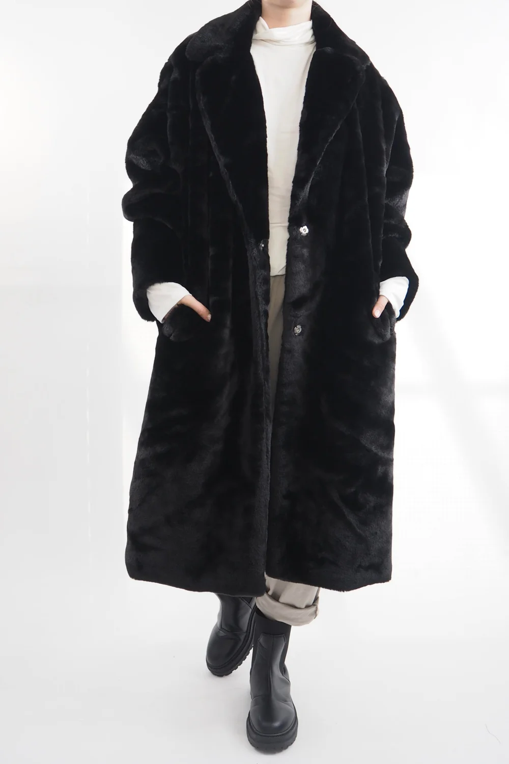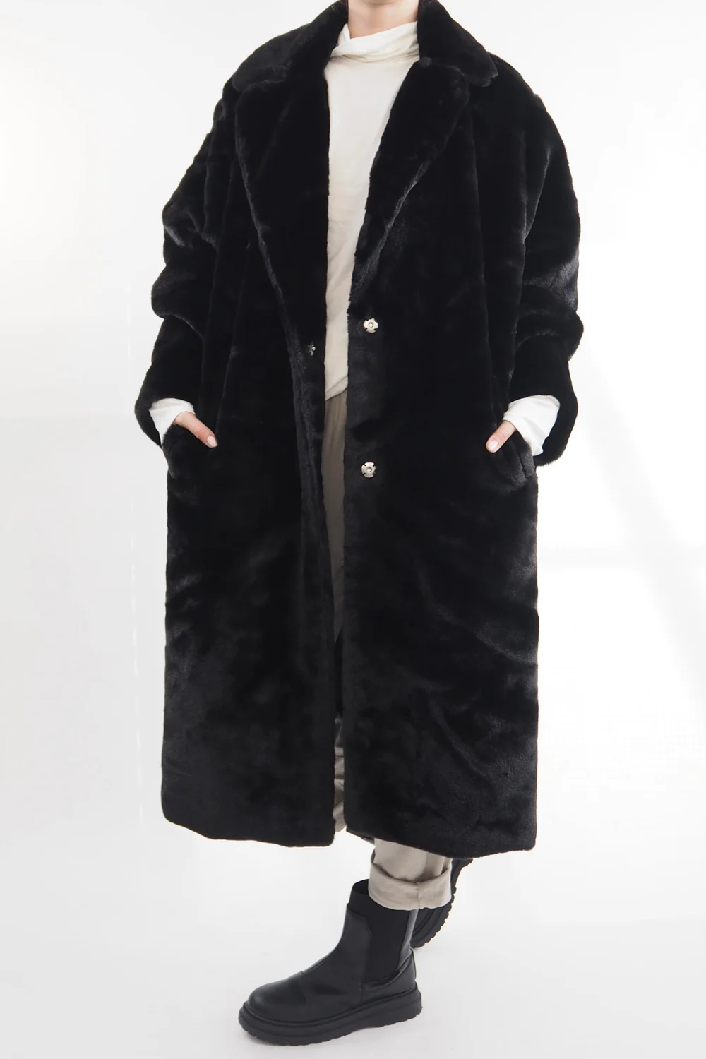 Indulge in the epitome of autumn elegance with our luxurious faux fur teddy coat, Laundry B Mara Teddy Coat in Black a masterpiece crafted for those stylish autumn strolls. As the crisp golden leaves fall, wrap yourself in opulence and warmth. This coat effortlessly combines fashion and function, offering unparalleled comfort with its plush faux fur that feels just as lavish as the real thing. The rich, caramel hue adds a touch of sophistication to any ensemble, elevating your autumn wardrobe to new heights. Its oversized silhouette ensures both comfort and style, allowing you to layer it effortlessly over your favourite chunky knits and tailored trousers. Embrace the season in style, embracing the cosy embrace of this teddy coat as you wander through the autumnal beauty, turning heads and making a statement wherever you go.