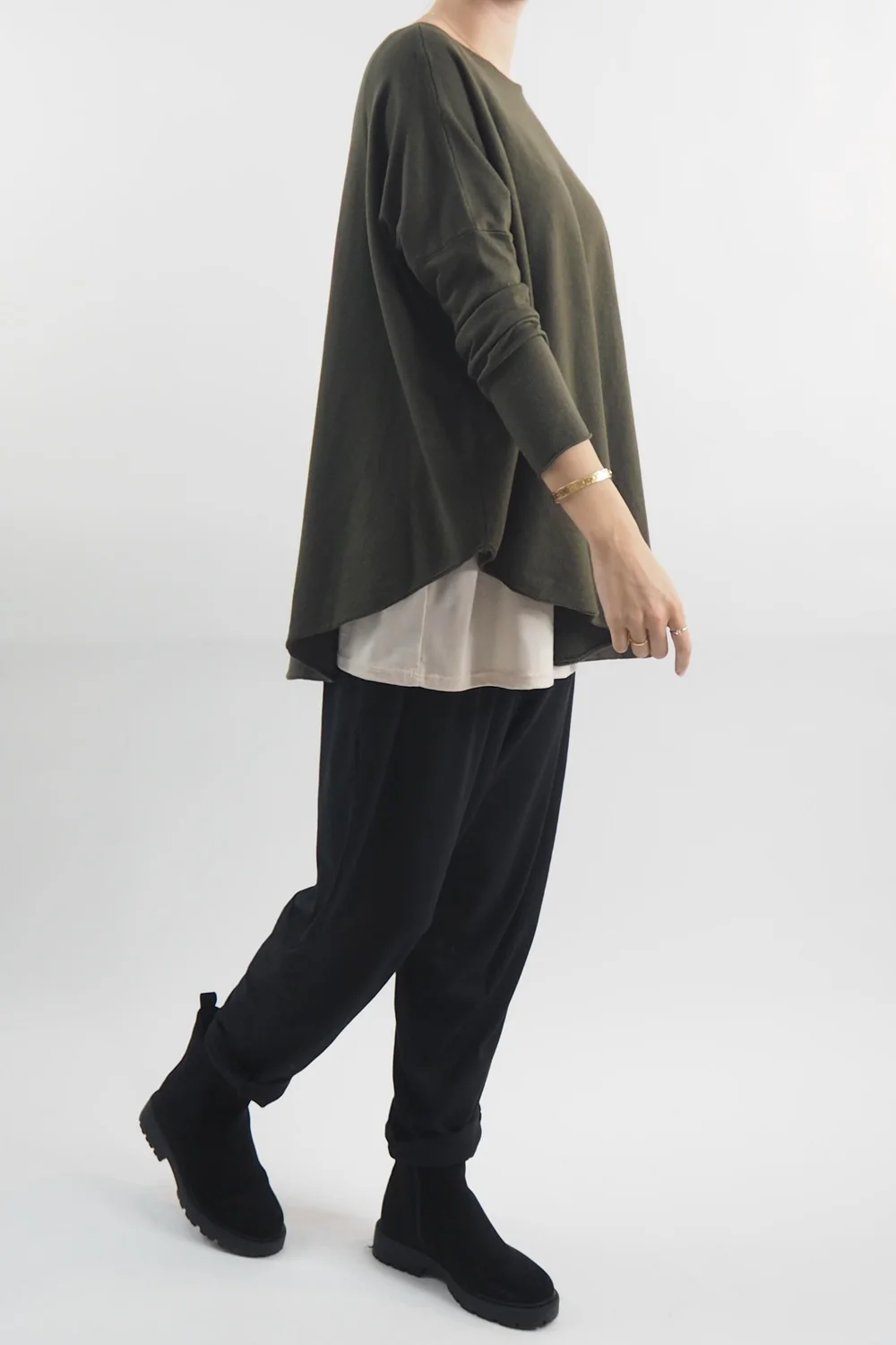Introducing the epitome of comfort and style: The Laundry B Scoopy Knit Top in Bonsai green is a super soft, stretch knit with a sensuous scoop hemline. This versatile piece transcends seasons, promising year-round comfort and style. Crafted from the finest, super-soft fabric, it feels like a gentle embrace against the skin and is a total must have in your wardrobe. Style with our Made in Italy Edit Jo Jo Quirky’s, this knit effortlessly elevates any ensemble.