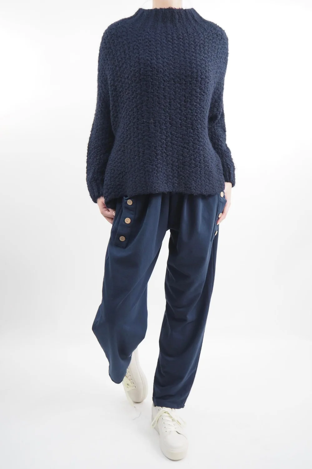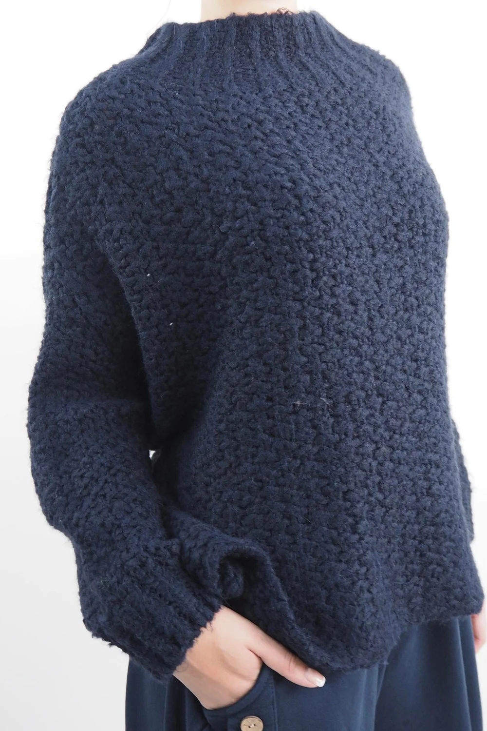 Get ready to cosy up in style this season with the new Made in Italy Arlo Basket Knit Top in a Ink, dark blue tone. This comfortable knit will beocme your go to knit of the season. The oversized silhouette not only embraces the essence of laid-back luxury but also keeps you snug and stylish during those crisp autumn days and chilly winter nights. It’s the perfect embodiment of relaxed sophistication, ensuring you’ll turn heads wherever you go. So, indulge in warmth and fashion this year by making this exquisite piece your go-to choice for effortless elegance.