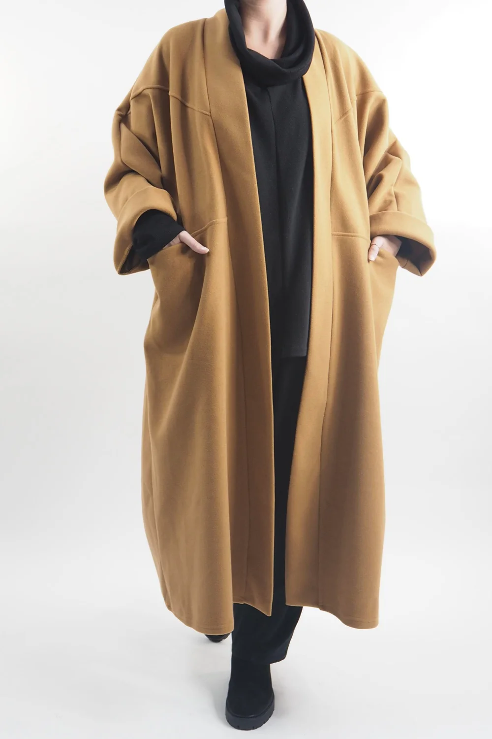 Elevate your post-pilates elegance with our exquisite Made in Italy Belgravia Relaxed Coat in Classic Camel tan brown, a versatile piece that effortlessly combines comfort and style. This coat is the epitome of laid-back luxury, making it the ideal choice for slipping into for a day out. Its loose, flowing silhouette not only provides an easy fit but also adds an element of graceful movement to your every step.