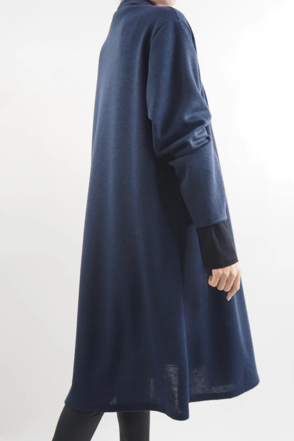 Indulge in the epitome of autumn-winter elegance with our Belgravia Stretch Duster Jacket in Navy, from Made in Italy Clothing. Crafted from a stretch knit fabric, it embraces you in unparalleled comfort, boasting a softness that’s simply irresistible. Elevate your cosy autumn look by pairing this duster jacket with matching Belgravia wide-leg trousers, offering a harmonious and sophisticated silhouette that exudes effortless style. Alternatively, for a touch of edgy sophistication, team it up with our Pesca Leather Look Leggings, instantly transforming your ensemble from daytime chic to a captivating evening affair.