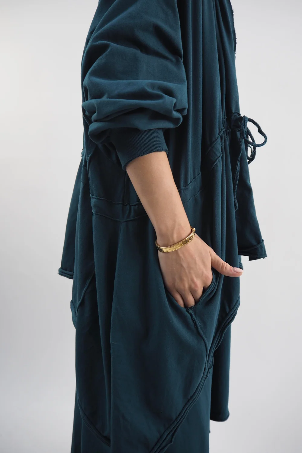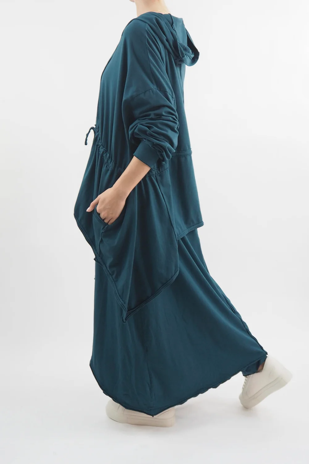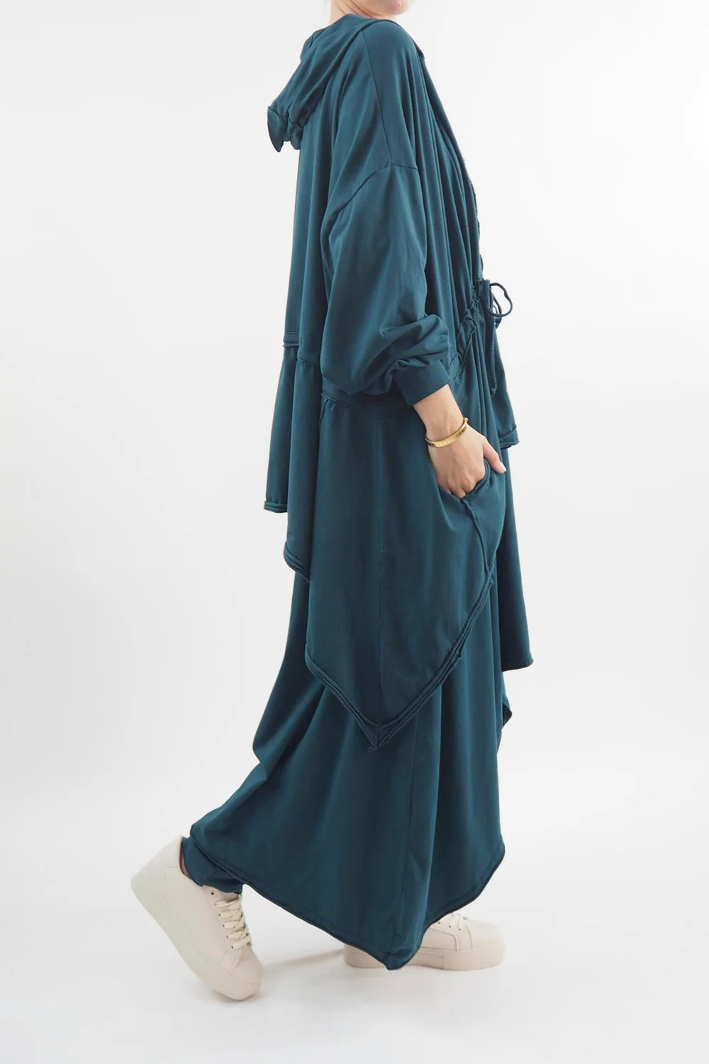 Introducing the ultimate must-have for this season’s wardrobe: our Made in Italy Bodhi Goody Hoodie in Dark Lagoon, teal blue tone, a super cool, seam detail, cinch waist hoodie crafted in a lightweight stretch cotton that effortlessly blends style and comfort. Style with our Made in Italy Bodhi Archie Dress & Bodhi Slim Leg Pants for the perfect Lagenlook look.