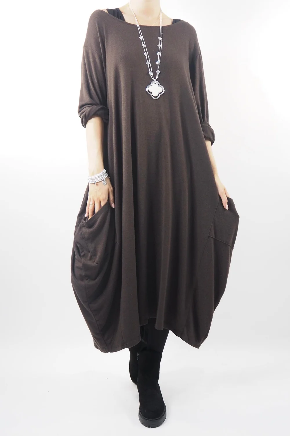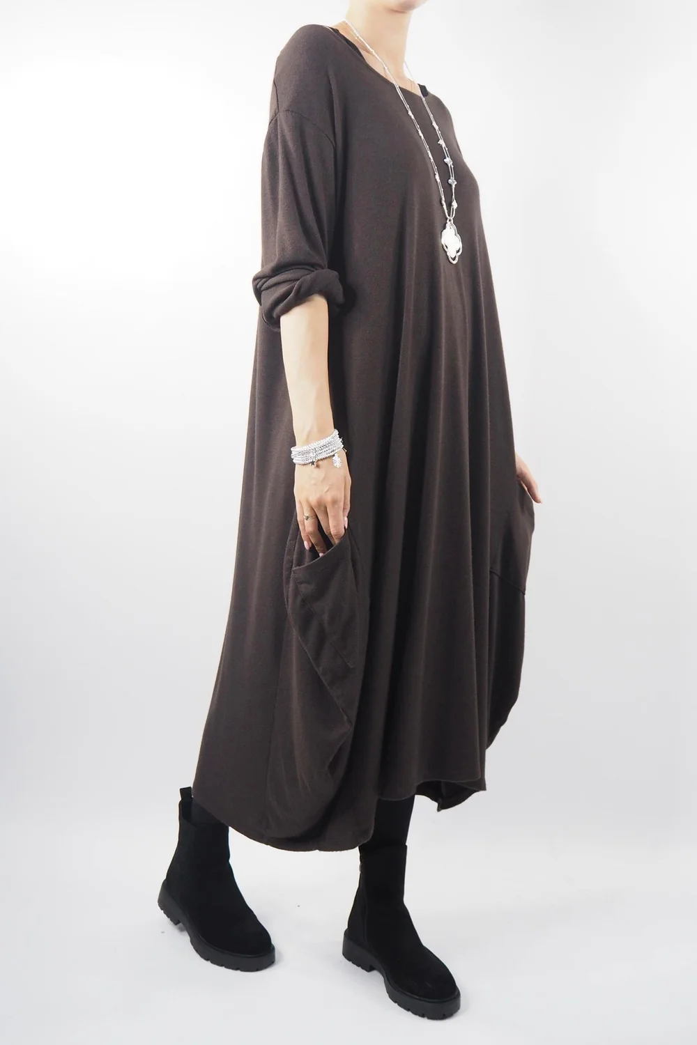 Made In Italy Chalet Classic Cocoon Knit Dress Umber Brown **