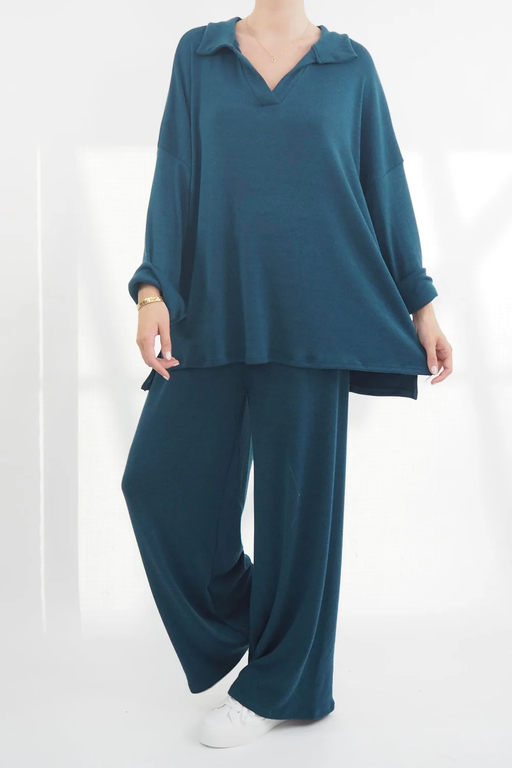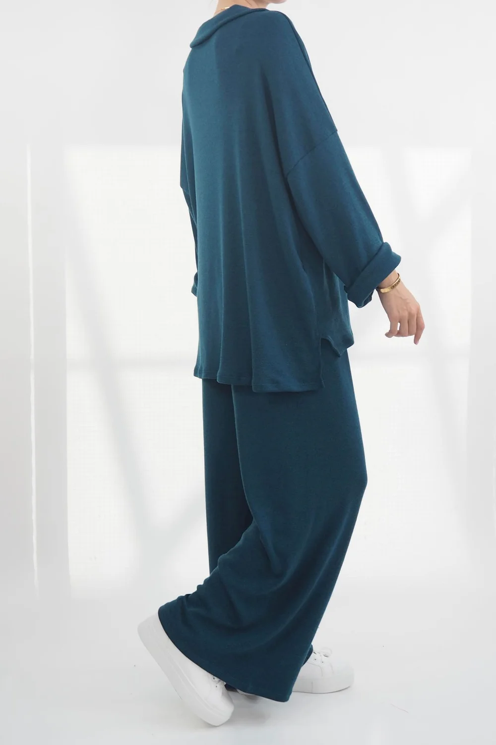 Made In Italy Chalet Collared Soft Knit Set Prussian