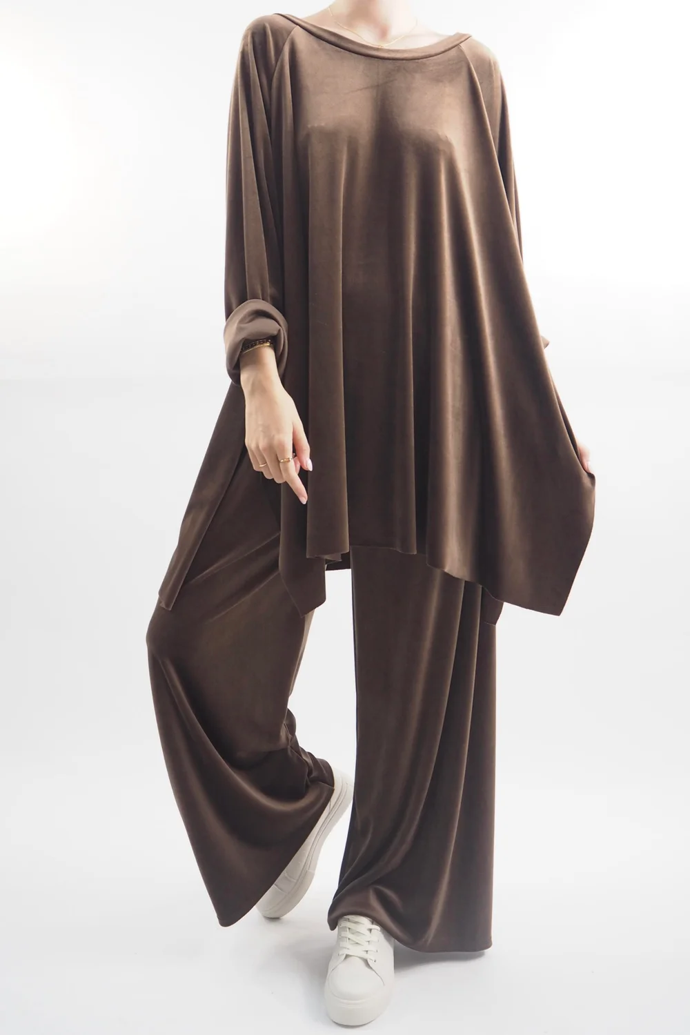Indulge in ultimate comfort and style with our luxurious Made in Italy Chalet Soft Stretch Velour Set in Cocoa brown tone – the epitome of chic loungewear! Crafted with a plush velvety texture, this set is designed for those who refuse to compromise on fashion even during downtime. The relaxed-fit top features a flattering round neckline, ensuring a flattering silhouette while keeping you cosy. Paired with the matching velour pants, it’s an ensemble that effortlessly combines comfort and elegance. Whether you’re curled up with a book or sipping a latte at home, this set promises to elevate your lounging experience to a whole new level of glamour and relaxation.