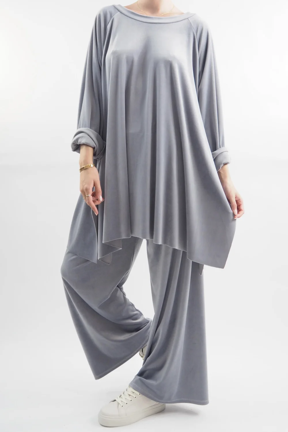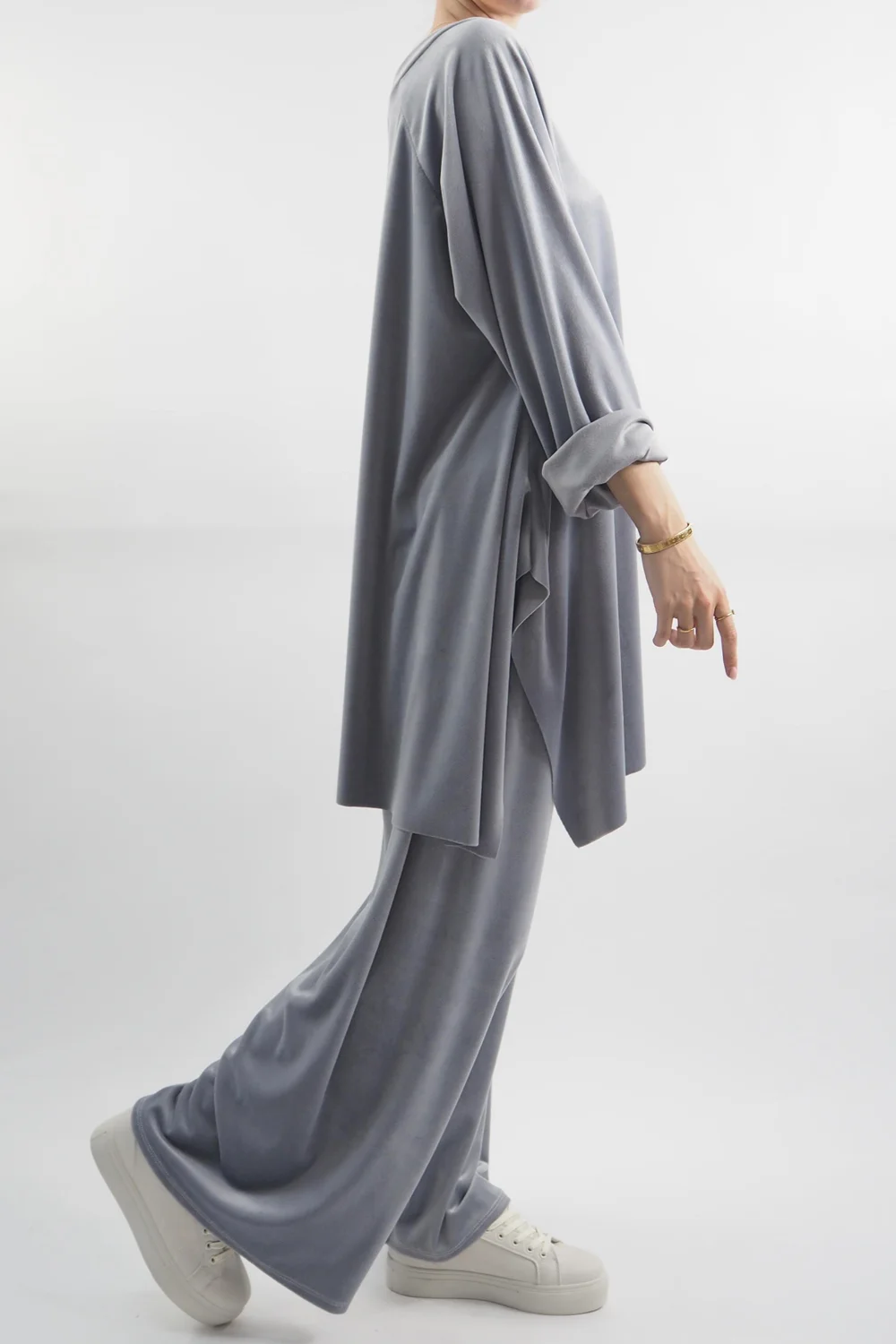 Made In Italy Chalet Soft Stretch Velour Set Dove