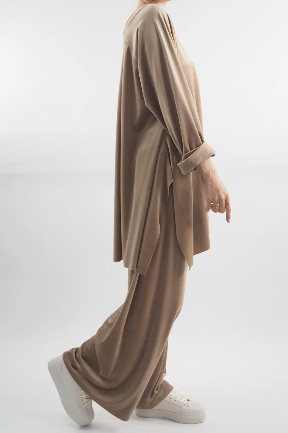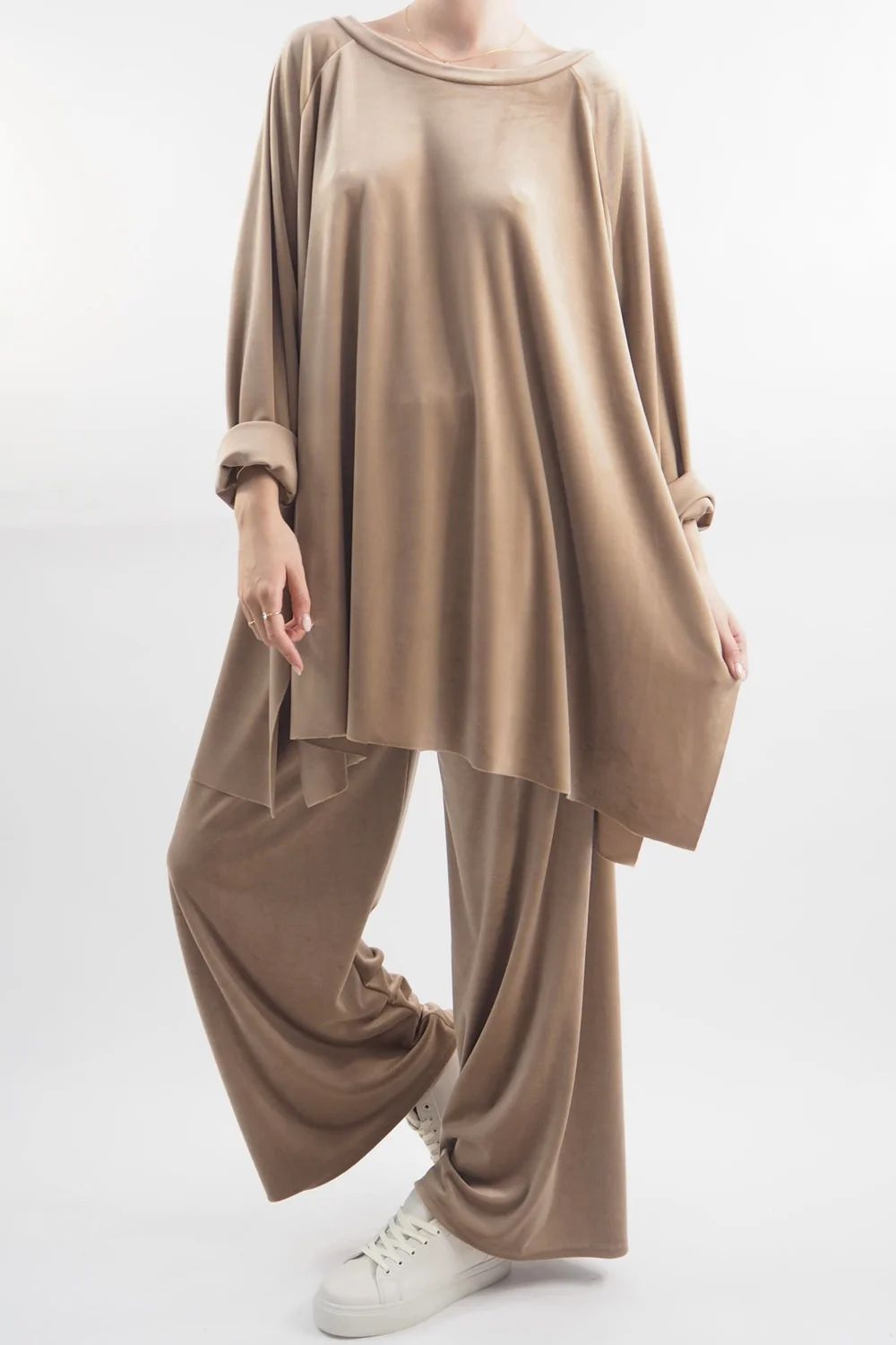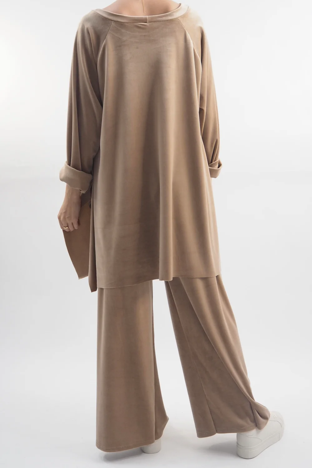 Indulge in ultimate comfort and style with our luxurious Made in Italy Chalet Soft Stretch Velour Set in a soft tan beige tone – the epitome of chic loungewear! Crafted with a plush velvety texture, this set is designed for those who refuse to compromise on fashion even during downtime. The relaxed-fit top features a flattering round neckline, ensuring a flattering silhouette while keeping you cosy. Paired with the matching velour pants, it’s an ensemble that effortlessly combines comfort and elegance. Whether you’re curled up with a book or sipping a latte at home, this set promises to elevate your lounging experience to a whole new level of glamour and relaxation.