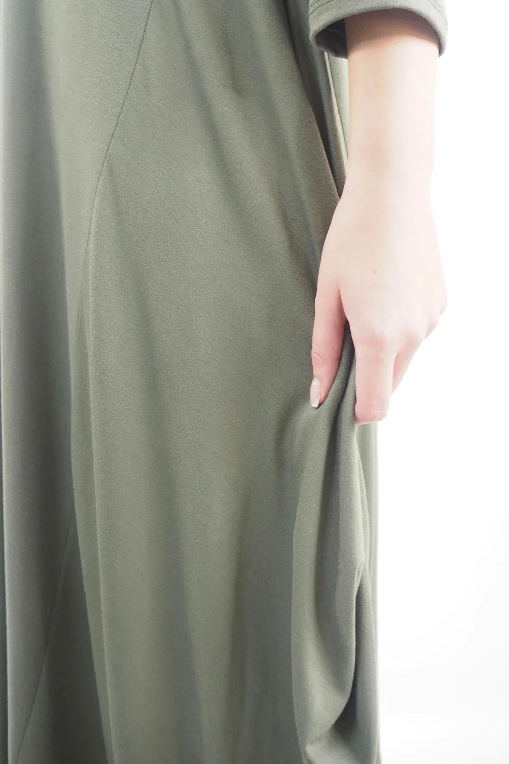 Made In Italy Classic Long Sleeve Parachute Maxi Dress Khaki