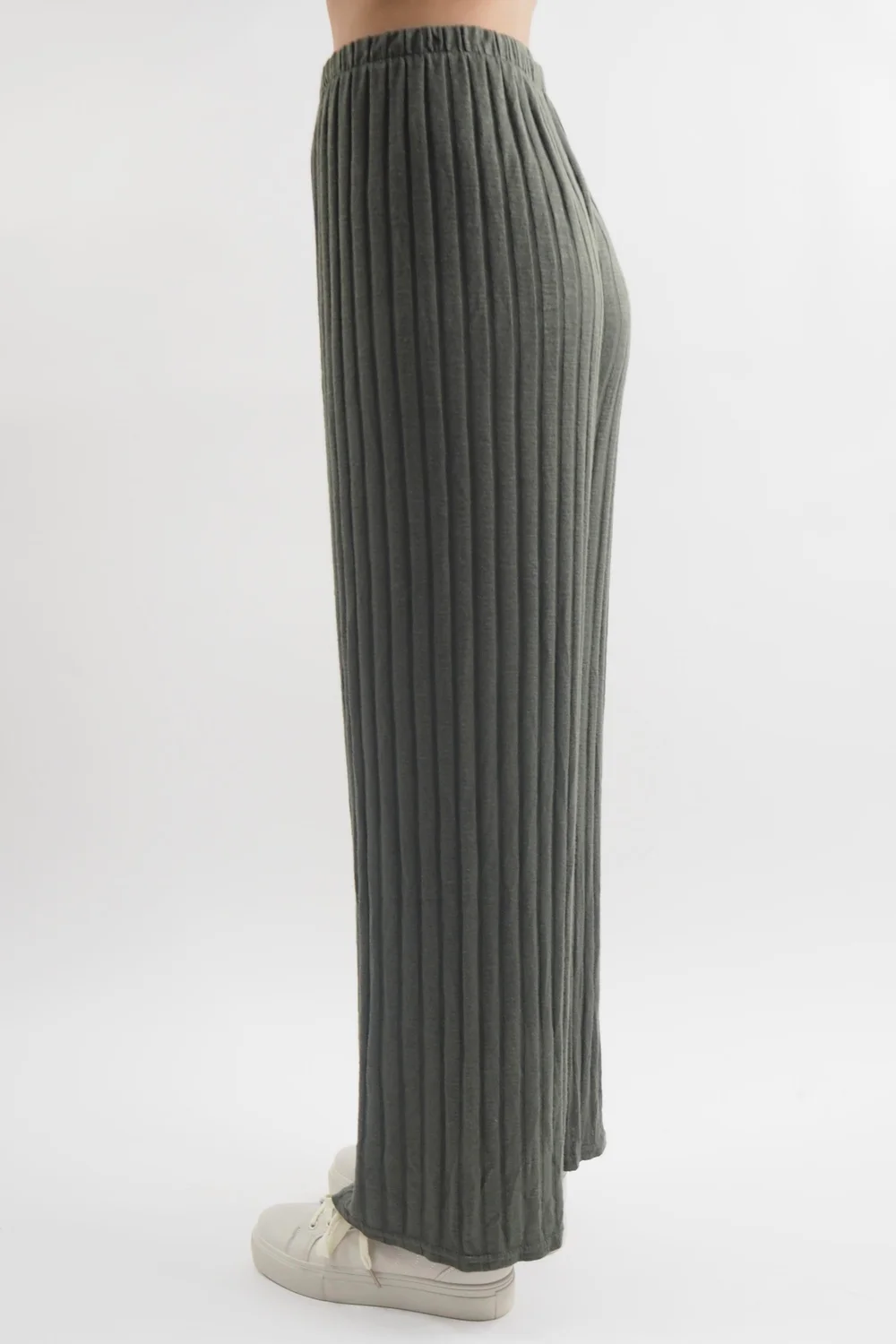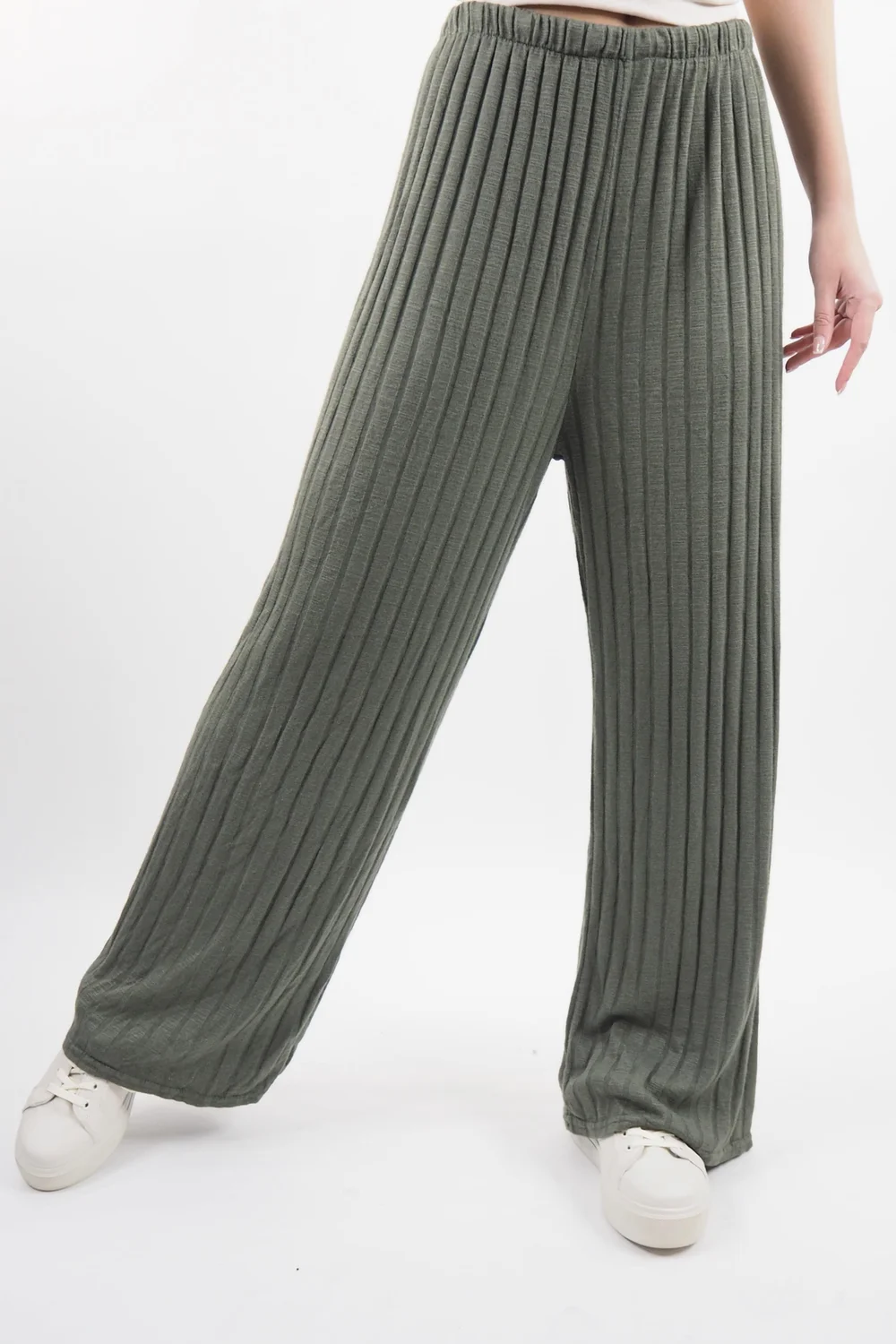 Indulge in the ultimate comfort and style with our Made in Italy Classic Super Soft Ribbed Fine Knit Pant in Khaki, green tone. These luxurious trousers are a testament to the perfect fusion of fashion and cosiness. The intricate ribbed texture adds a touch of sophistication to the relaxed wide-leg silhouette, making them a must-have addition to your wardrobe. Pair them with the Classic Super Soft Ribbed Fine Knit Top for a coordinated look that exudes effortless chic, or opt for our Conrad Classic Blanket Knit Top for a relaxed and cozy ensemble that’s perfect for chilly days.