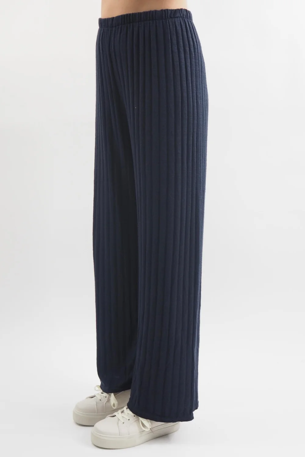 Made In Italy Classic Super Soft Ribbed Fine Knit Pant Midnight