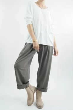 Indulge in the luxurious embrace of our Made in Italy Classic Super Soft Ribbed Fine Knit Top in Ecru, warm white tone, a super soft, ribbed, stretch, fine knit that redefines comfort and style. Elevate your wardrobe with this wardrobe staple that seamlessly combines coziness and sophistication. It’s the perfect choice for those who demand both comfort and style in their daily wear.