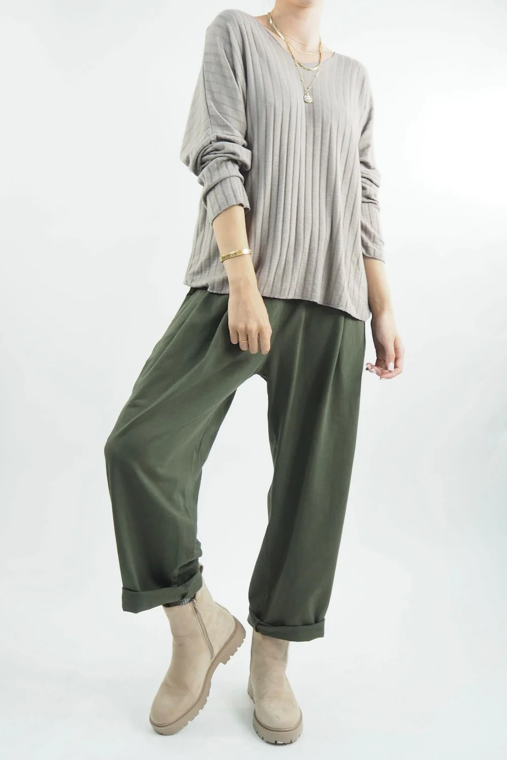Indulge in the luxurious embrace of our Made in Italy Classic Super Soft Ribbed Fine Knit Top in Mocha, beige brown tone, a super soft, ribbed, stretch, fine knit that redefines comfort and style. Elevate your wardrobe with this wardrobe staple that seamlessly combines coziness and sophistication. It’s the perfect choice for those who demand both comfort and style in their daily wear.