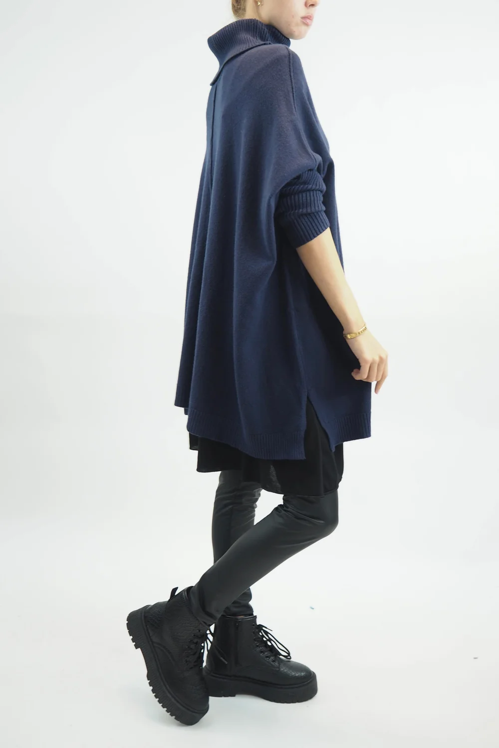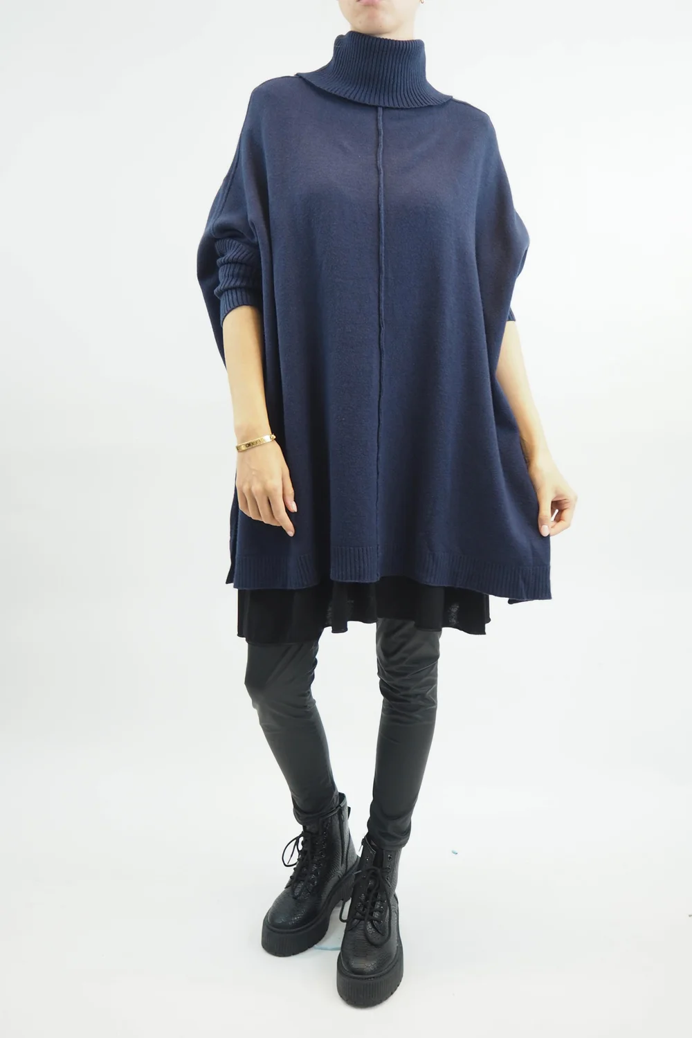 Picture yourself wrapped in the epitome of comfort and style with our latest obsession: the Conrad Classic Blanket Knit Top in Ink dark blue tone, from Made in Italy clothing. This cosy and soft knit piece effortlessly combines warmth and style, making it an essential addition to your autumn and winter wardrobe. Its oversized silhouette embraces you in a gentle embrace, perfect for those chilly days when you crave nothing but cosiness. Style with a pair of our Apres Skinny Jogger or with our Pesca Leather Look Leggings, this knit is a versatile and stylish choice that promises to keep you snug and stylish all season long.