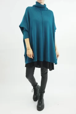 Picture yourself wrapped in the epitome of comfort and style with our latest obsession: the Conrad Classic Blanket Knit Top in Prussian blue green tone, from Made in Italy clothing. This cosy and soft knit piece effortlessly combines warmth and style, making it an essential addition to your autumn and winter wardrobe. Its oversized silhouette embraces you in a gentle embrace, perfect for those chilly days when you crave nothing but cosiness. Style with a pair of our Apres Skinny Jogger or with our Pesca Leather Look Leggings, this knit is a versatile and stylish choice that promises to keep you snug and stylish all season long.