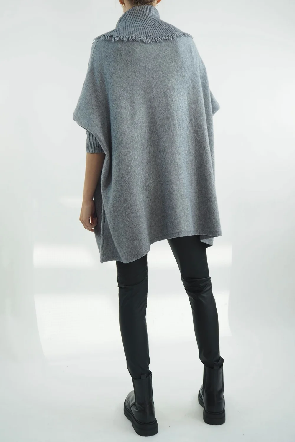 Made In Italy Conrad Oversized Fray Cowl Knit Top Slate Marl