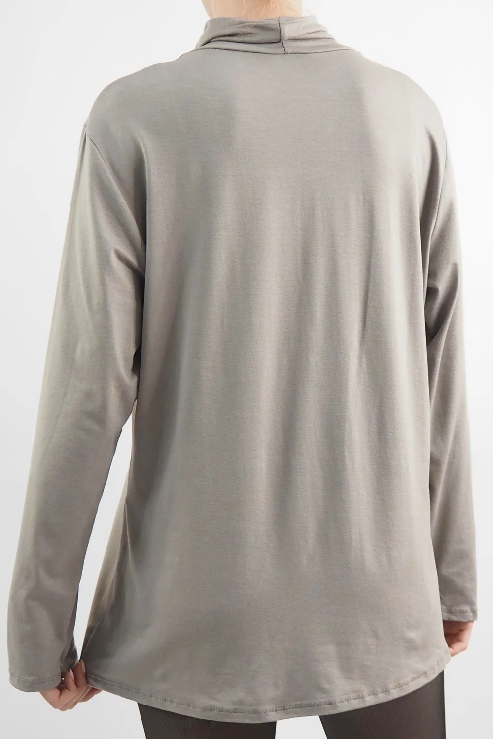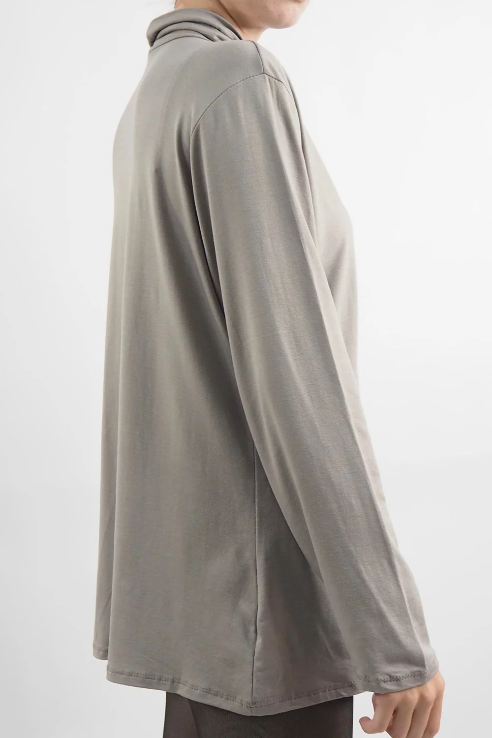 Everybody needs a fantastic quality, polo neck top in their wardrobe: our Made in Italy Fine Jersey Polo Neck Top in Mocha is a must have, foundation piece in your wardrobe. Crafted from a sumptuous blend of luxuriously soft fabrics, it glides over your skin, promising a sensation of pure luxury. Whether you choose to flaunt it as a standalone statement or layer it.Â