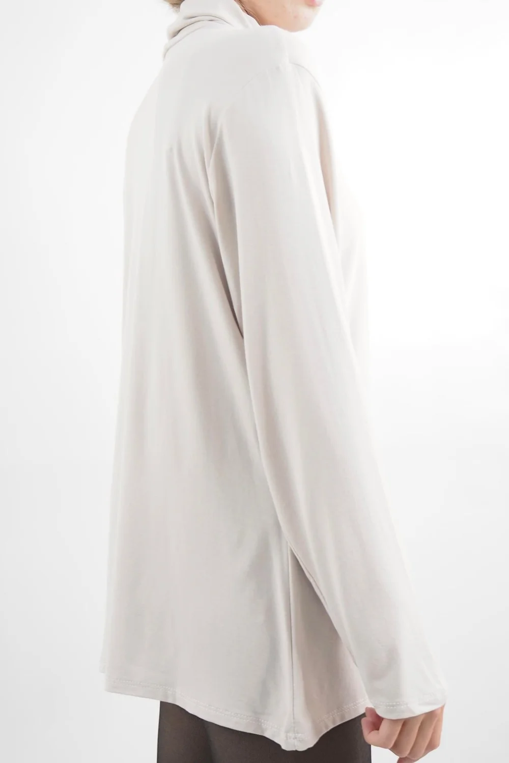 Everybody needs a fantastic quality, polo neck top in their wardrobe: our Made in Italy Fine Jersey Polo Neck Top in Stone, beige tone, is a must have, foundation piece in your wardrobe. Crafted from a sumptuous blend of luxuriously soft fabrics, it glides over your skin, promising a sensation of pure luxury. Whether you choose to flaunt it as a standalone statement or layer it.Â