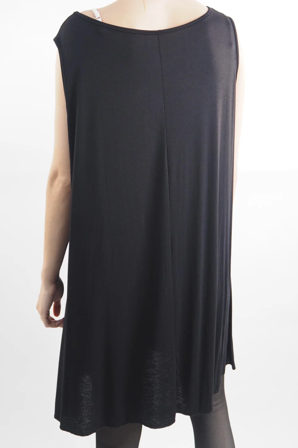 Apart of our Made in Italy Evergreen Collection is our Made in Italy Fine Jersey Swing Vest in a Classic Black tone. This is the perfect base piece for all looks, all year round with its simplistic, scooped neckline and long line fit.