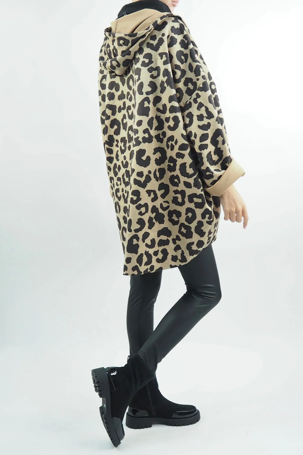 Made In Italy Hope Moleskin Touch Leopard Cocoon Jacket Tan