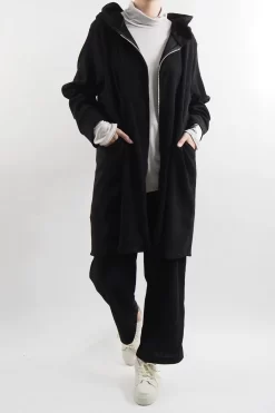 Elevate your everyday wardrobe with the ultimate in comfort and style: the Jumbo Softie Stretch Cord Long Zip Jacket in Black. This versatile piece is the epitome of cosy-chic, designed to seamlessly transition from a day out to a night in. Whether you’re running errands or lounging around the house, this jacket is your new go-to choice. Pair it with our fine jersey polo neck and cosy leg leggings for a timeless, snug ensemble, or create a complete corduroy look with matching Jumbo Softie Stretch Cord Cargo Pants.